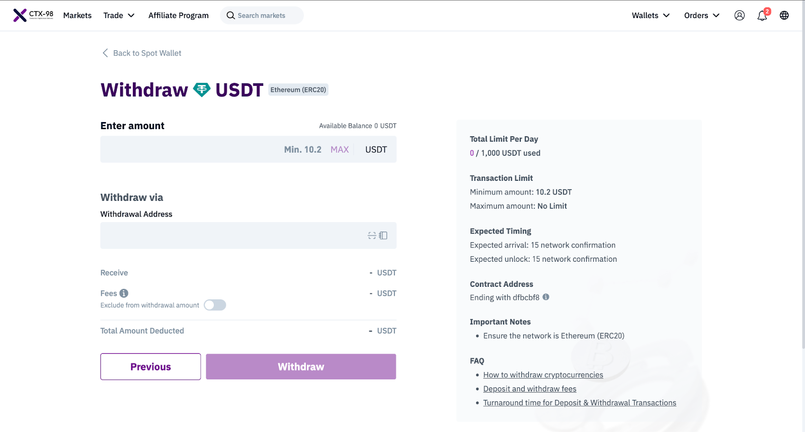 Selecting the incorrect currency or blockchain may result in the permanent loss of your asset/s. Before making a withdrawal transaction, please take extra precaution to ensure all of the information entered is correct.